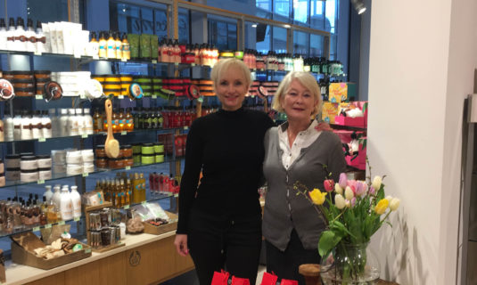 En zo kwamen we terecht bij Hanneke (rechts op de foto) van The Body Shop; een bekend gezicht in Oranjerie. Een half jaar na de opening van Oranjerie in 1994 opende zij namelijk de deuren van de beauty-winkel en dat wil zeggen dat zij inmiddels ruim 24 jaar te vinden is in het winkelcentrum ! Onlangs verhuisde The Body Shop weer naar hun oude plekje in de hoofdpassage. “Fijn dat we weer op deze locatie zitten, maar nu in een vernieuwd winkelcentrum” vertelt Hanneke. “Dit is toch stiekem wel het beste plekje, vanaf hier hebben we het fijnste contact met de klanten en de nieuwe moderne uitstraling past ook weer helemaal bij deze tijd”. Ook Mascha (links op de foto) is een bekend gezicht van de winkel. “Er wordt ons vaak gevraagd of we moeder en dochter zijn” vertelt Hanneke. “Maar dat zijn we niet, we hebben wel een enorm goede klik!” En die chemie hebben ze niet alleen met elkaar, maar ook met de vaste bezoekers is te zien tijdens het gesprek in de winkel! “We hebben inderdaad goed contact met onze klanten en ook leuk om te zien dat generaties mee opschuiven” vertelt Mascha.
